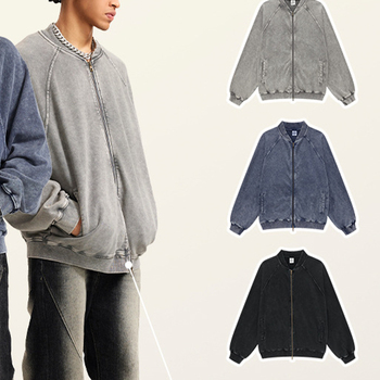 2024 Outono 450G Heavyweight Loop Lavado Vintage Raglan Sleeve Jacket Moda Marca jaqueta solta para homens